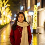 Nếu bạn tham gia các hoạt động ngoài trời như đi dạo phố ngắm đèn Giáng Sinh hay tham gia chợ phiên, hãy ưu tiên sự thoải mái và ấm áp. Các gam màu truyền thống như đỏ, xanh lá cây kết hợp với các màu trung tính như be, nâu sẽ rất phù hợp. Một chiếc áo khoác phao đỏ, mũ len xanh lá hoặc khăn quàng cổ kẻ caro sẽ vừa giữ ấm vừa tạo nên phong cách năng động, trẻ trung.